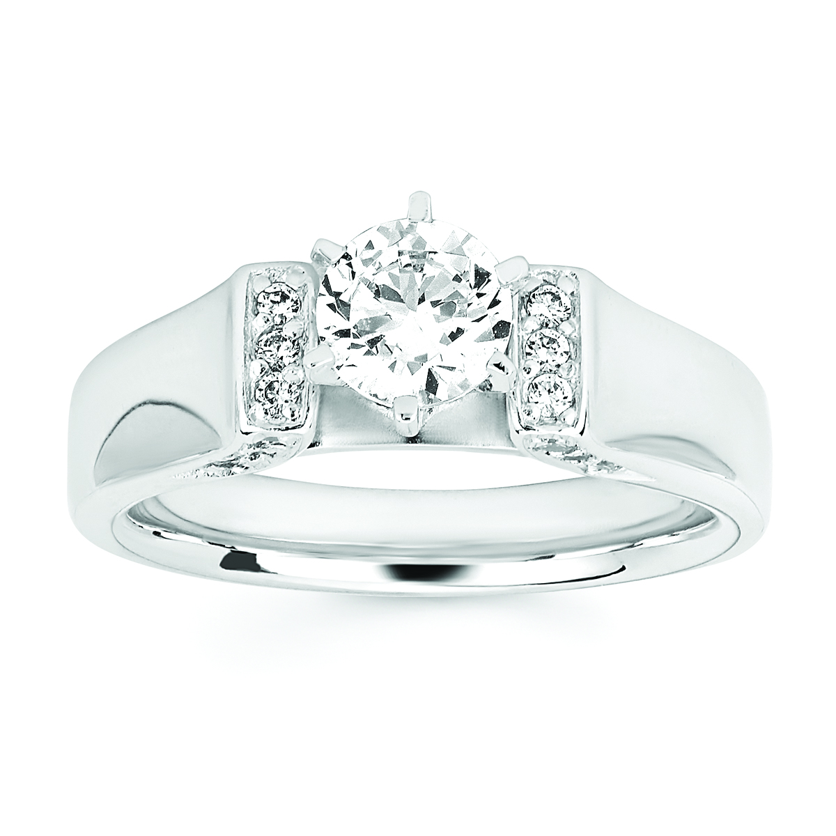Engagement Ring Classic Bridal: 1/5 Ctw. Diamond Semi Mount shown with 1 Ct. Round Center Diamond in 14K Gold