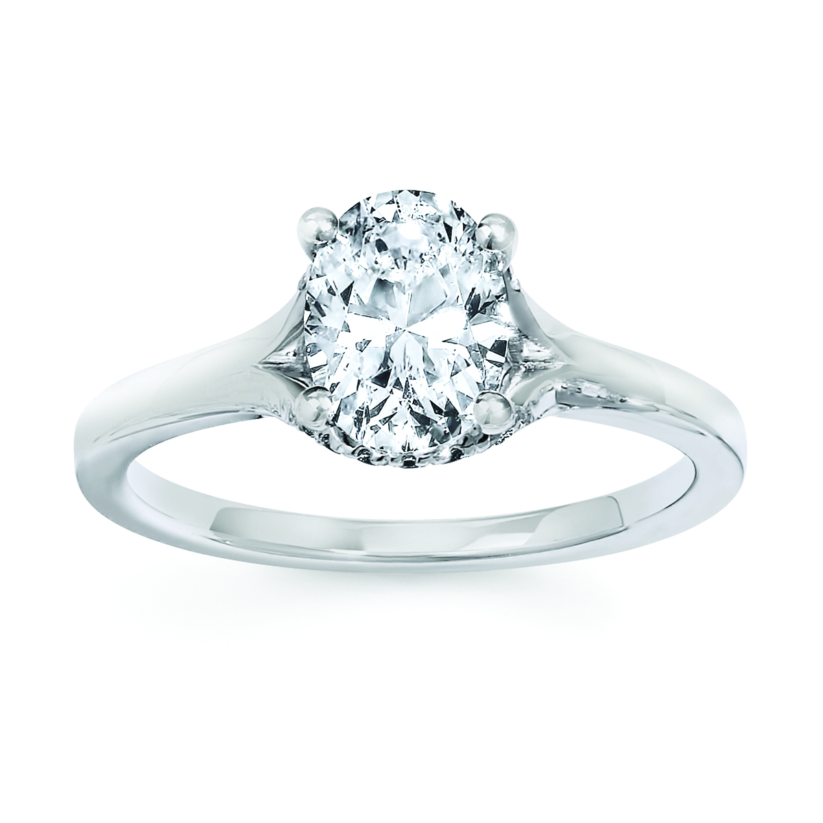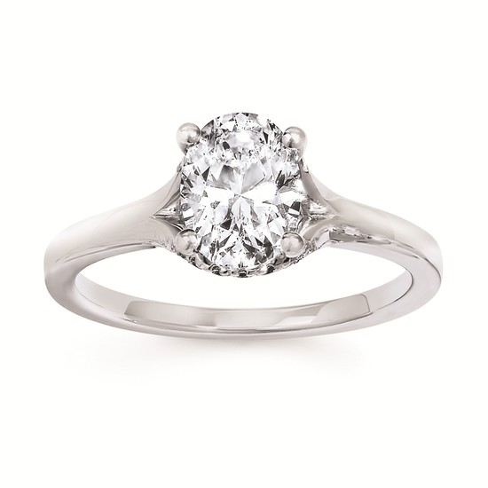 Engagement Ring Classic Bridal: 1/10 Ctw. Diamond Semi Mount shown with 1 Ct. Oval Center Diamond in 14K Gold